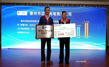 2018年4月18日,東江科技園“瞪羚匯”倍增計劃啟動暨首批培育企業(yè)授牌儀式在惠州市舉辦,園區(qū)管委會領(lǐng)導(dǎo)及各相關(guān)部門負責人、園區(qū)企業(yè)主要負責人等約100多人參加本次活動。福日電子成員企業(yè)惠州市邁銳光電有限公司等13家企業(yè)入選“瞪羚匯”倍增計劃培育企業(yè)?;葜葸~銳常務(wù)副總經(jīng)理陳曉斌上臺領(lǐng)取了培育企業(yè)牌匾和培育經(jīng)費支票。