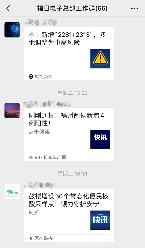 本部工作群內(nèi)每日更新疫情最新動(dòng)態(tài),宣傳疫情防控政策、提供核酸檢測(cè)相關(guān)信息,及時(shí)答疑解惑;公司紀(jì)檢部門(mén)第一時(shí)間貫徹落實(shí)集團(tuán)部署,督促全員嚴(yán)格落實(shí)疫情防控工作要求,做到企業(yè)所在地疫情防控指揮部發(fā)布公告要求開(kāi)展全員核酸檢測(cè)的,員工“應(yīng)檢盡檢”;在電子信息集團(tuán)系統(tǒng)率先發(fā)布致全體員工的倡議書(shū),發(fā)出眾志成城、共度時(shí)艱的動(dòng)員令,要求提高思想認(rèn)識(shí)、加強(qiáng)組織保障、發(fā)揮黨組織作用,切實(shí)筑牢疫情防控防線(xiàn)。