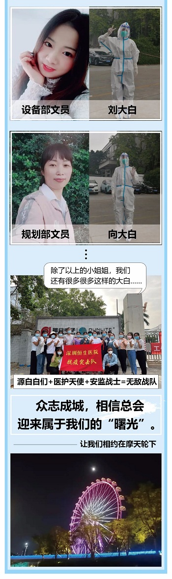無(wú)獨(dú)有偶,源磊科技也用“微光聚愛(ài)”。從2月26日至3月22日,在其中的13個(gè)日子里,源磊科技的16名志愿者“逆行”奔赴防疫前線(xiàn),配合當(dāng)?shù)赜嘘P(guān)部門(mén)開(kāi)展消毒、核酸檢測(cè)等工作。無(wú)論驕陽(yáng)似火,亦或刮風(fēng)下雨,這群“大白”們都堅(jiān)守在志愿服務(wù)一線(xiàn)。正如他們所說(shuō),疫情當(dāng)前,他們從不缺席,迎接美好四月天是他們堅(jiān)持的動(dòng)力。