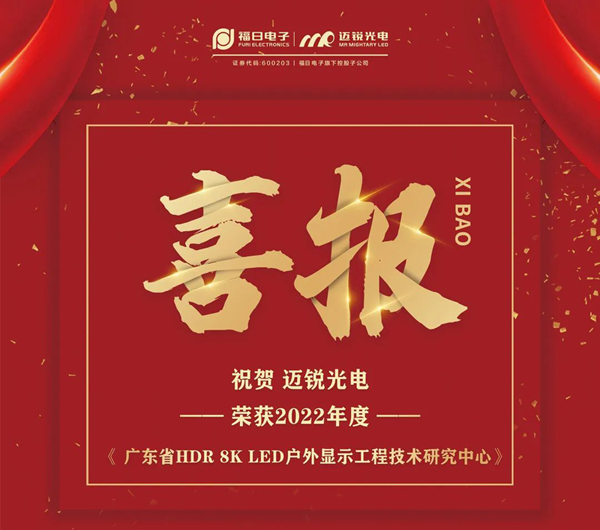 近日,廣東省科學技術廳發(fā)布了《關于擬認定2022年度廣東省工程技術研究中心名單的公示》,經(jīng)專家評審和網(wǎng)上公示,福日電子成員企業(yè)邁銳光電獲2022年度廣東省HDR 8K LED戶外顯示工程技術研究中心資格認定。