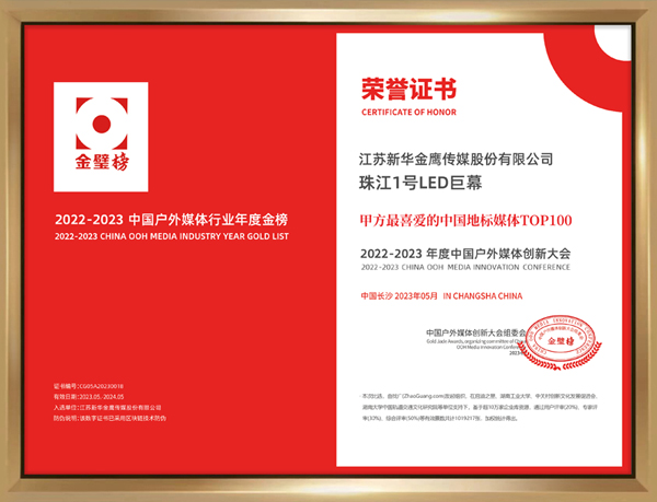 近日,“金璧獎(jiǎng)·2023中國戶外媒體創(chuàng)新大會”以“超級媒體、超級流量、超級品牌”為主題盛大開幕,由福日電子成員企業(yè)邁銳光電匠心打造的南京“珠江1號巨幕”憑借在品牌增值、流量變現(xiàn)、媒體傳播等方面的傲人成績,成功斬獲“甲方最喜愛的中國地標(biāo)媒體TOP100”榮譽(yù)。