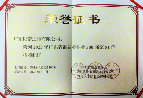 近日,在“2025年廣東省制造業(yè)500強(qiáng)企業(yè)峰會”上,福日電子成員企業(yè)以諾通訊憑借堅實的產(chǎn)業(yè)基礎(chǔ)與穩(wěn)健增長的業(yè)績表現(xiàn),成功入選“2025年廣東省制造業(yè)企業(yè)500強(qiáng)”,位列第81位,較去年提升14位,展現(xiàn)出公司在高質(zhì)量發(fā)展道路上的強(qiáng)勁勢頭與日益突出的行業(yè)影響力。