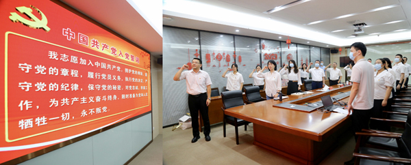 “我志愿加入中國共產(chǎn)黨,擁護黨的綱領(lǐng),遵守黨的章程……”隨后,黨員們心懷赤誠,舉起右拳,重溫入黨誓詞,追憶入黨初心,鏗鏘有力的聲音響徹會場,表達了對黨的無限忠誠與熱愛。