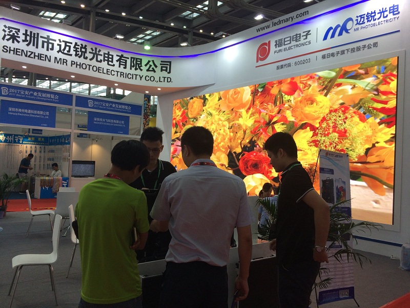 2017年7月27日,第二屆寶安產業(yè)發(fā)展博覽會在深圳會展中心一號館開展,福日電子成員企業(yè)深圳市邁銳光電有限公司攜小間距UTV1.25和租賃系列R3等暢銷產品,在電子信息精密制造區(qū)C1714—C1725展位亮相。參展期間,邁銳光電小間距產品和租賃系列產品廣受客商關注。
