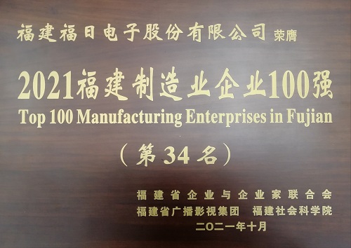 福日電子入選2021福建制造業(yè)企業(yè)100強