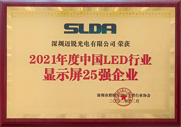 近日,福日電子成員企業(yè)邁銳光電榮獲“2021年度中國LED行業(yè)顯示屏25強(qiáng)企業(yè)”及“《Mini LED室內(nèi)商用顯示屏》優(yōu)秀參編團(tuán)體”兩項(xiàng)行業(yè)榮譽(yù)。